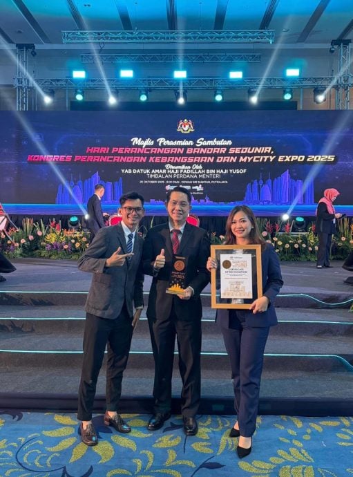 亚庇市政厅发文告指出,上述荣誉是布城举行的世界城市规划日暨全国城市规划大会上活动,由副首相拿督斯里法迪拉亲自颁发,见证者包括房屋及地方政府部长倪可敏及首相署(联邦直辖区)部长拿督斯里扎丽哈。