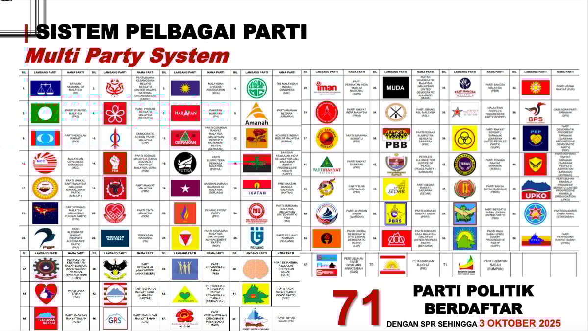(亚庇28日讯)截至今年10月,全国有71政党已向选举委员会注册,可在沙巴选举中上阵。