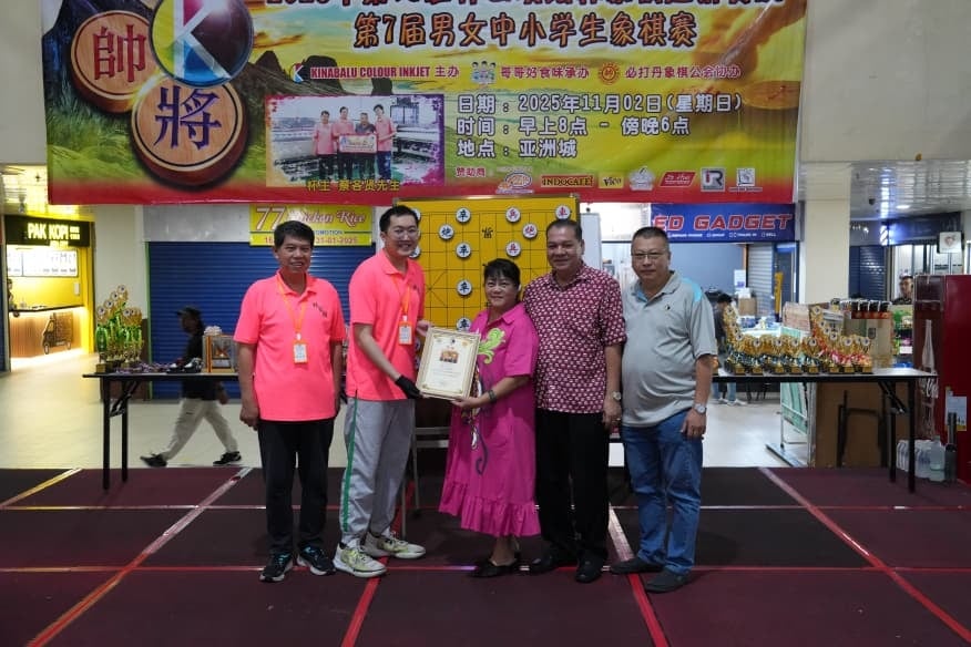 (亚庇3日讯)“2025年第13届神山喷绘杯象棋邀请赛暨第7届男女中小学生象棋赛”周日热闹上演,开幕挂帅主宾拿汀罗美群勉励青少年棋手要从对弈中学习如何面对挑战,如何在挫折中成长,这才是象棋真正的精神所在。
