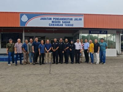 斗湖罗里同业公会成员与斗湖陆路交通局对话后合影。