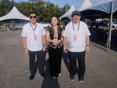 沙巴愿景党下南南候选人保罗(上图中坐者)及达劳区候选人玛丽雅(下图中坐者)一同抵达候选人提名中心里卡士 MAKSAK 会堂。