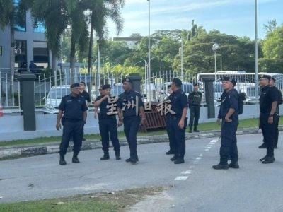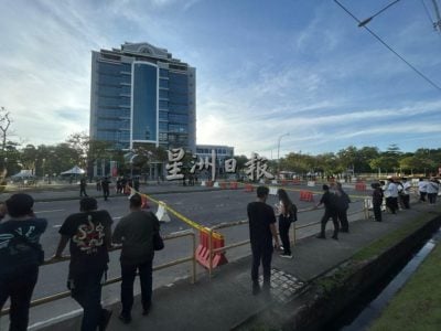 亚庇3州席提名中心的内陆税收局大厦前开始有支持者聚集