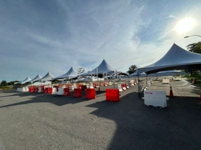 必打丹提名中心现场搭好多个帐篷,供候选人支持者遮荫。
