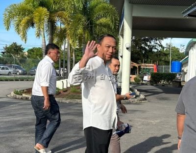 民统党下南南区候选人拿督黄天福抵达候选人提名中心里卡士 MAKSAK 会堂。