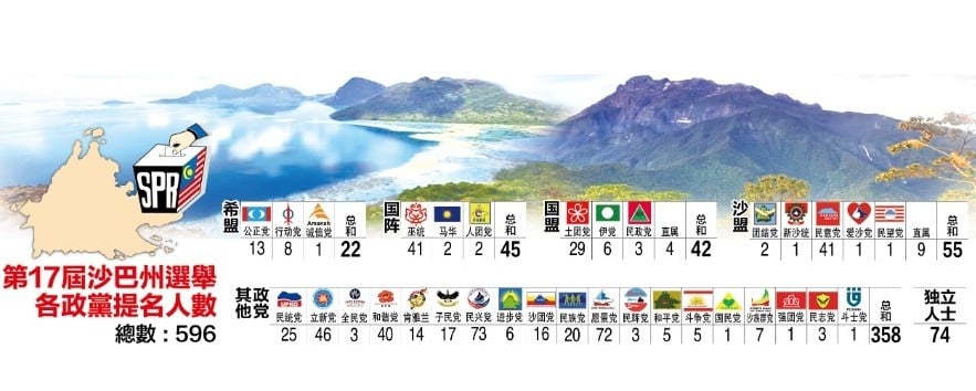 选举委员会主席拿督斯里南兰哈伦披露,共有23个政党参加沙巴选举,另有74名独立候选人参选。