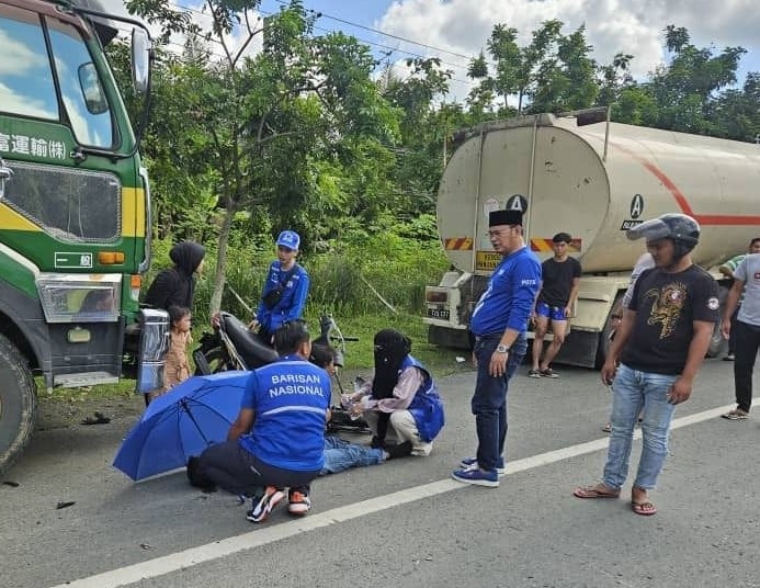 (拿笃16日讯)国阵诗南州议席候选人沙拉夫莫沙在前往竞选活动途中,在拿笃至斗湖路上发现严重交通事故,立即下车伸出援手,展现出富有同理心的领导力。