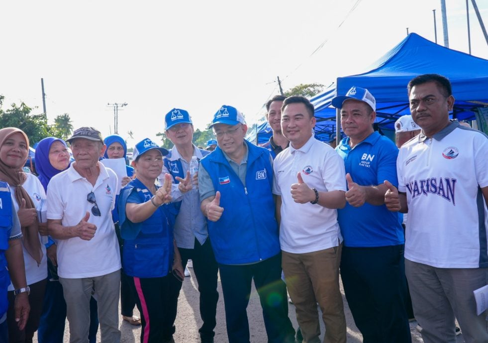 一同拜票的领袖包括马华署理总会长拿督马汉顺医生、副总会长拿督陈德钦、沙巴马华署理主席拿督彭胜欢,以及巫统和沙巴人民团结党的党员。