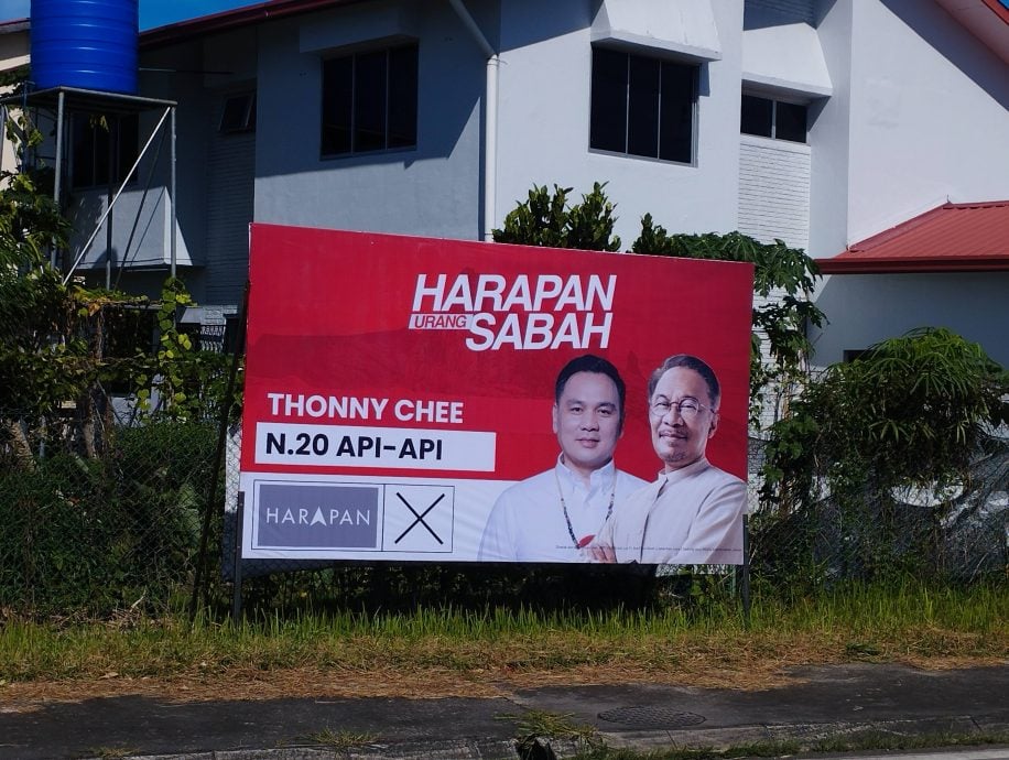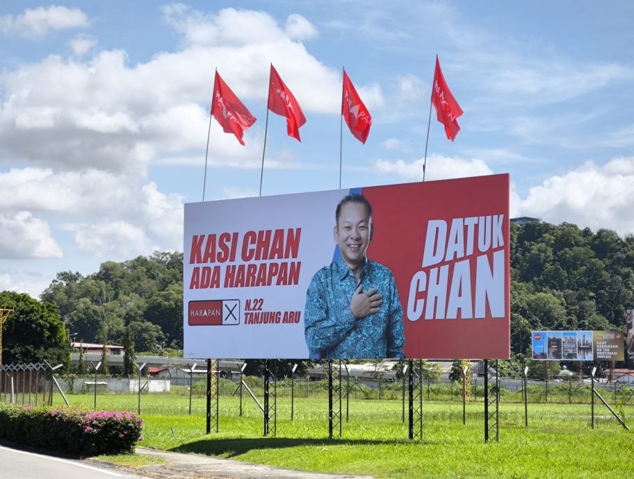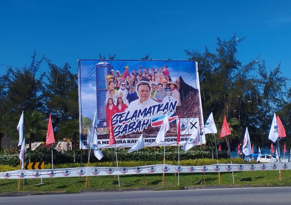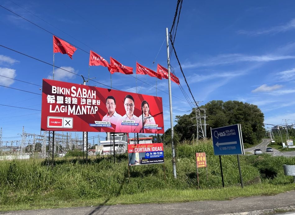 第17届沙巴州选举成为史上最多人参选的州选,周六上午提名结束后,各路人马立即开展竞选活动,精彩的旗海战、候选人海报战也掀开序幕。在华人选民目光聚焦的亚庇亚庇、路阳、里卡士、丹绒亚路乃至甘拜园选区,各政党人马于短时间内在道路旁插上党旗、候选人看板和广告牌,向选民传达政治讯息和植入印象。提名日的第2天,放眼望去以希盟与民兴党的旗海战术最为注目,而候选人海报则以希盟较为领先。