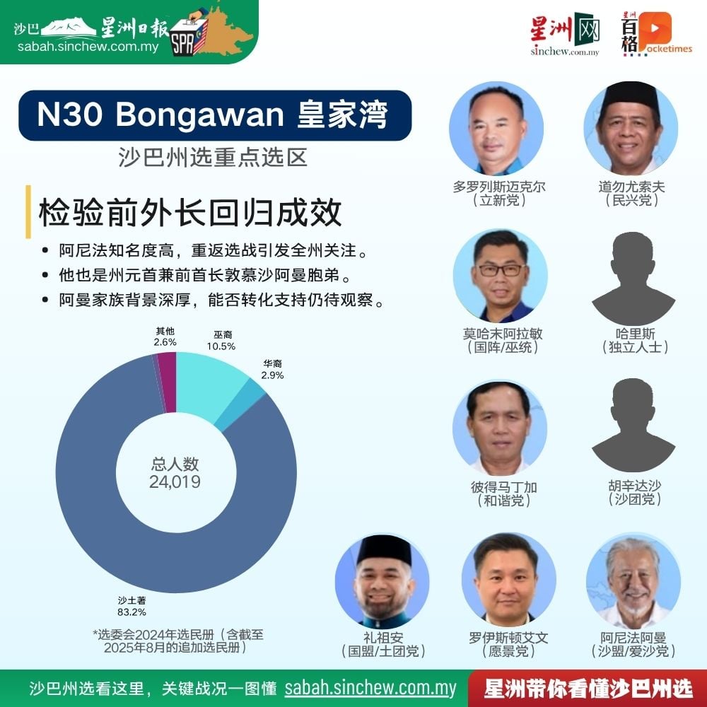 阿尼法的回归受到全州关注。他知名度高、家族背景深厚,但沙巴选民向来看“地气”比看“履历”。
