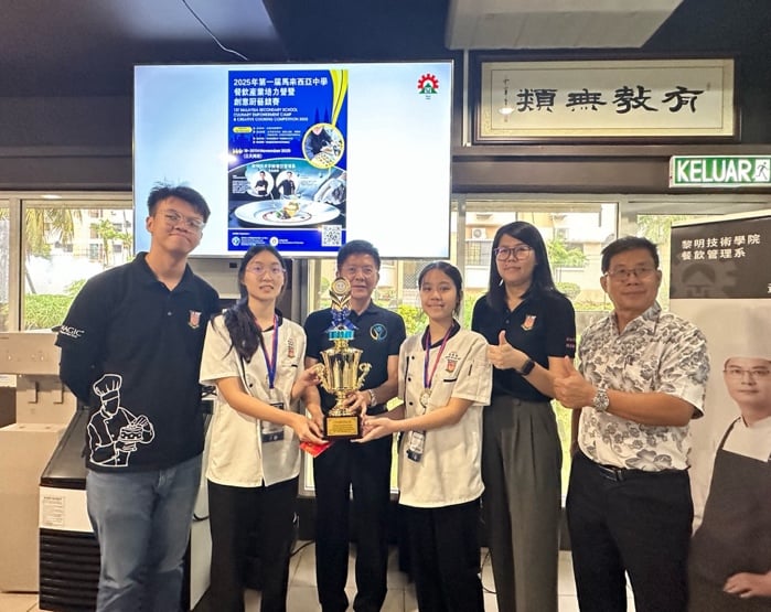(亚庇21日讯)2025年第1届马来西亚中学餐饮产业培力营暨创意厨艺竞赛,亚庇建国中学夺得金牌及银牌,铜牌落在山打根育源中学,5名佳作则由亚庇善导中学两队组合、亚庇建国中学三队组合,在所有18队的参赛组合中,表现出色,脱颖而出。