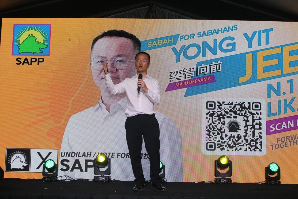 (亚庇23日讯)进步党里卡士候选人杨奕智今晚发表竞选演讲,提出三大核心政纲——发展体育馆经济、落实999年地契,以及全面捍卫马来西亚建国契约(MA63)与40%净税收返还权。