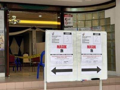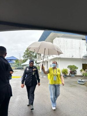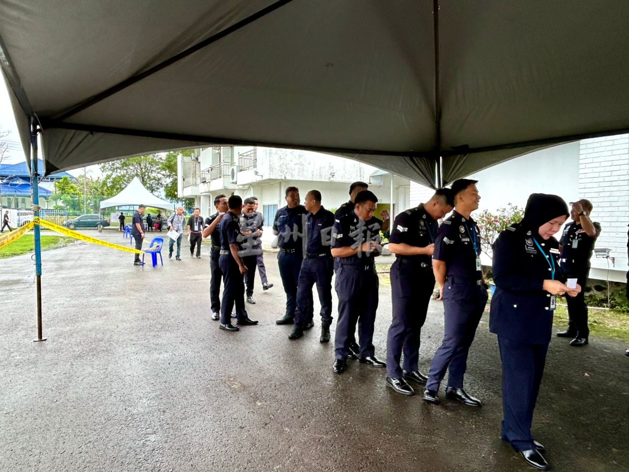第17届沙巴州选举提前投票今早8时展开,甘拜园沙巴警察总部高级警官具乐部的投票中心不到7点半,就有警察冒雨到场排队等候。