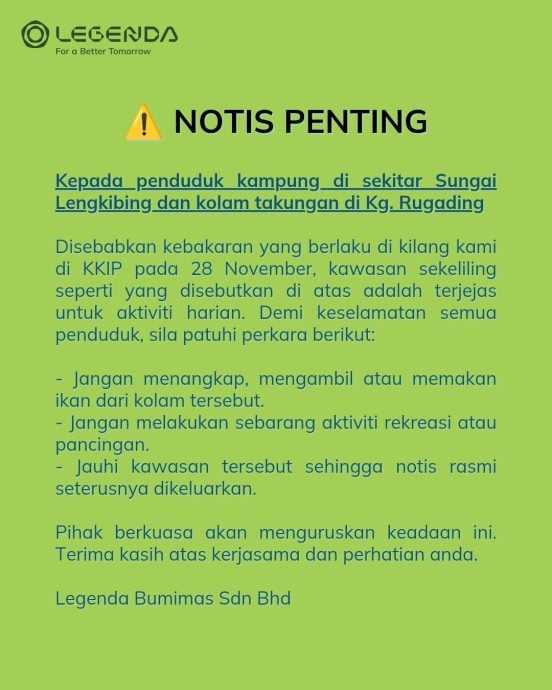 Legenda Bumimas公司发布文告。(图取自Legenda Bumimas脸书主页)