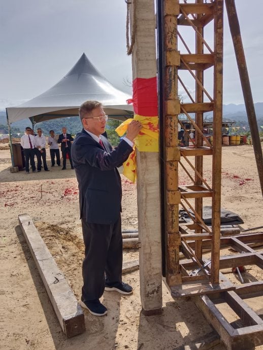 沙巴前首长拿督杨德利、马来西亚王氏总会前任总会长拿督王喜等约40位嘉宾联合主持动土仪式。刘顺泰、黄省城、副阁长郑镇平、林保佑及张贵铭亦主持在桩柱系五色彩带仪式。