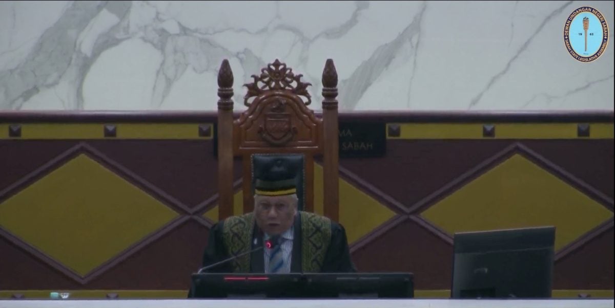 州议长卡特辛今日在沙巴州议会举行的州议员宣誓就任仪式进行前,发表一席话,并与在座的州议员们一同悼念邦莫达,场面肃穆。