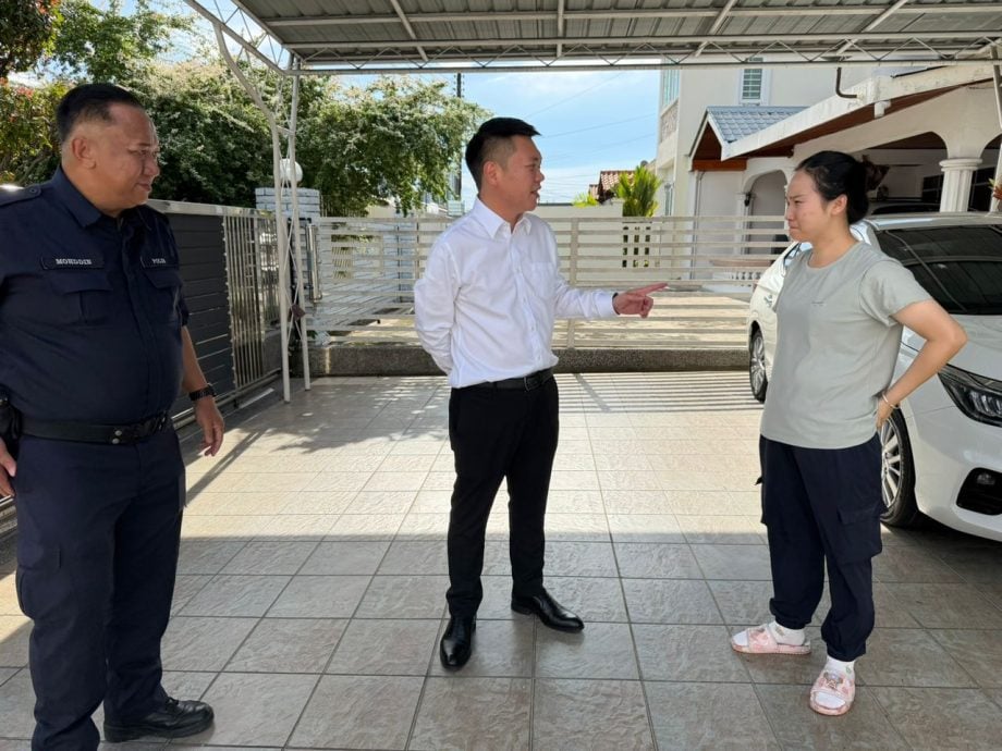 黄俊铨今日走访了路阳一带6户遭受一系列破门行窃未遂的屋主,并在路阳警局警员的陪同下,向他们了解情况。