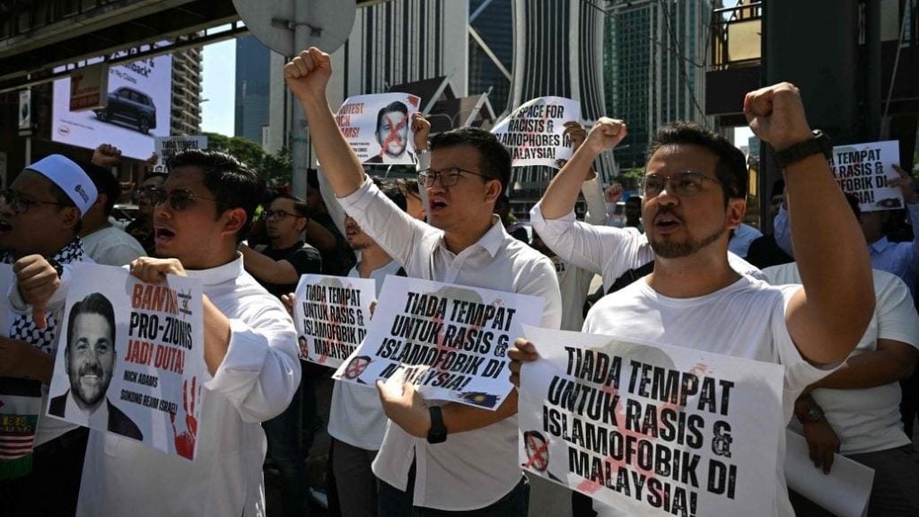 因不满美国总统特朗普提名自诩“阿尔法男”的网红尼克亚当斯出任美国驻马来西亚大使,公正党青年团、民主行动党社青团、诚信党青年团以及亲巴勒斯坦的非政府组织数十名集会者今日前往美国驻马大使馆前,提出抗议。