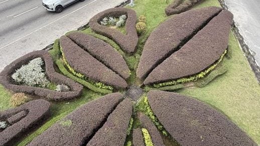 在AMJ大道马六甲市区路段的繁忙车流之间,藏着一抹让人眼前一亮的绿意。当局将四周交通岛以修剪整齐的灌木与草坪组成独特图案,从高处俯瞰,宛如一朵盛开的花,为城市增添柔和的生命力。