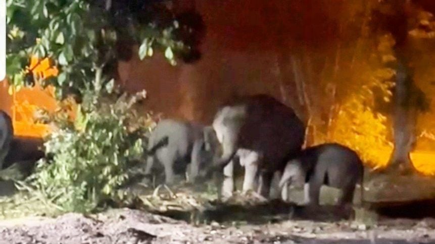 逾10野象闯入甘榜开趴 引起村民恐慌