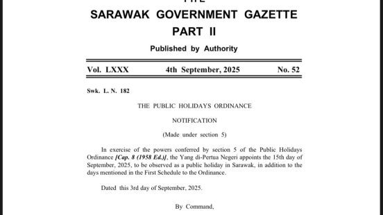 (古晋4日讯)砂政府已透过宪报颁布,正式将 2025年9月15日(星期一) 列为马来西亚日的特别公共假期。 砂劳工局表示,这个额外假期也符合劳工条例(砂第76章)第 根据劳工条例(砂第76章)第104(1)(b)条文,受该条例保护的员工有权在当天日享有公共假期。然而,雇主可以将这一天设定为补假,让员工在其他日期休息。 若这个补假与员工的休息日重叠,则下一个工作日将自动成为补假。 劳工局提醒,对于需要在公共假期工作的员工,雇主也可根据劳工条例104(6)、(7)及(9)条文,支付相应的假期工作日工资。