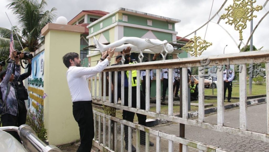(亚庇11日讯)验尸庭今日在吧巴敦达杜慕斯达法里茂岸宗教中学进行现场勘察,使用两个人偶进行坠落模拟实验,并以水来模拟查拉的体重。