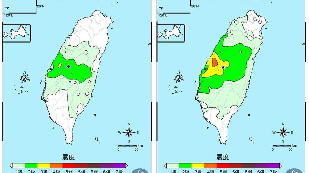 台湾中央气象署地震报告指出,南投周四从下午开始至晚上已发生4起有感地震,尤其晚上8时许在13分钟内连2震,震央都位在中寮乡,中部地区民众纷纷提高警觉,就连南投县政府也在脸书发文称“今天南投有点上下抖”,建议民众在家中常备紧急避难包,谨慎防灾。