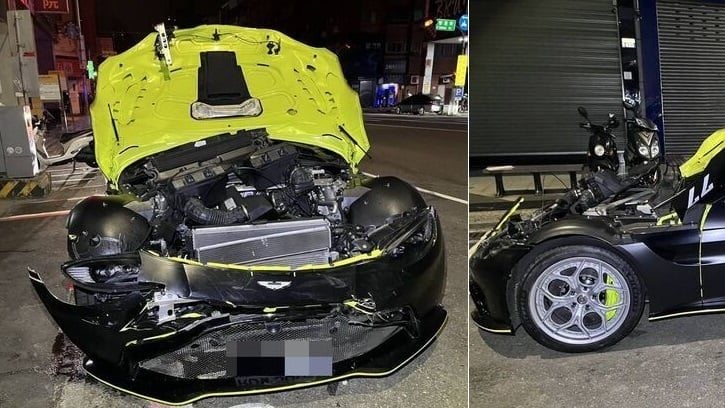 台中市一名男子凌晨时分驾驶一辆价值约新台币1400万元(约194万令吉)的阿斯顿马丁Vantage AMR超跑,在西屯区连环追撞3辆轿车,超跑车头全毁,引擎更被挤出车外,惨不忍睹。