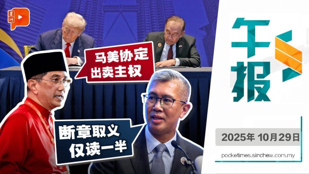 《马美对等贸易协定》掀起主权之争,阿兹敏批政府听命美国、被迫跟随制裁政策;投贸部长东姑赛夫鲁反击,公开逐句解读条文反驳…… 【新闻看点】 哈山卡林国会怒批马美协定:我不赞成 电玩纠纷酿祸 9岁兄怒割6岁弟 3蒙面匪持刀抢餐馆 业者损失约万令吉金饰 百万人自愿加码EPF 缴纳破141亿 莱纳斯斥资5亿 扩建大马稀土厂 5少年骑士飙车挡救护车惹众怒