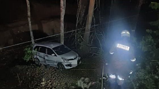 (拿笃10日讯)一辆休旅车不知何故失控坠入约10米深的山沟,民众发现后赶紧拨打急救热线(MERS999)求助。