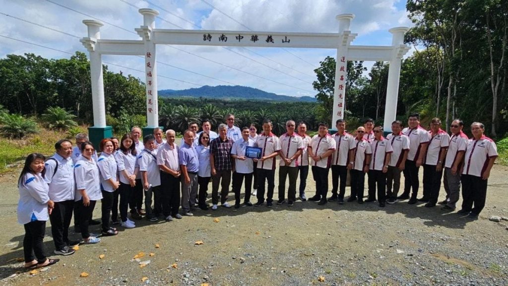 (拿笃13日讯)拿笃客家公会此前响应拿笃中华商会号召,资助兴建诗南中华义山牌楼,并于今日移交给该商会。