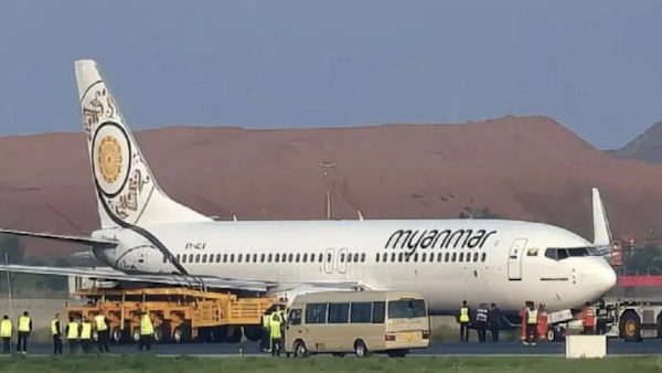 缅甸航空波音737客机降落昆明 右主起落架受损幸无人受伤