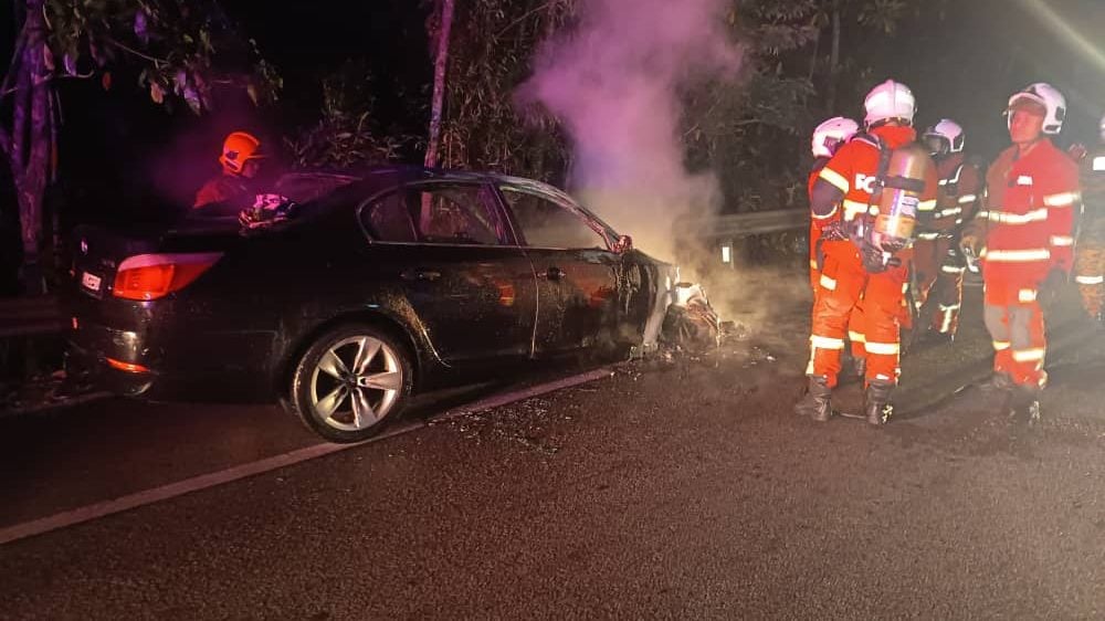 一名印裔妇人昨晚在驾驶途中,发现轿车疑似冒烟,便赶紧把车停在路边下车查看,岂料轿车突然着火燃烧!