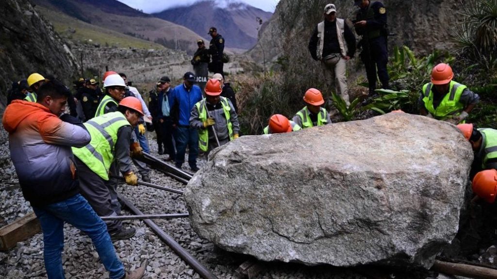示威者木头石块堵铁路 马丘比丘火车服务暂停