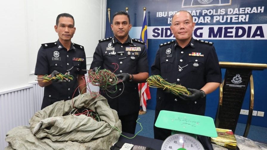(依斯干达公主城6日讯)依斯干达公主城警方近日逮捕了一个以商店和工厂电缆为目标的盗窃团伙,扣留了一名 38岁本地男子 和一名 31岁罗兴亚籍男子。这两名嫌犯将于明天被带上新山推事庭面控。 依斯干达公主城警区主任古马拉山今天召开新闻发布会表示,有2名嫌犯涉嫌在振林山地区盗窃电缆。依城警方随后分别于 9月27日和29日,在振林山及马西公主百万镇(Taman Cahaya Kota Puteri)逮捕了这两人。 他说,本地籍嫌犯拥有犯罪前科,尿检结果显示对冰毒呈阳性反应;而罗兴亚籍嫌犯则没有犯罪记录,尿检结果显示没有吸毒,2名嫌犯互相认识。 他指出,警方在行动中起获了1袋重约8公斤,内有各式各样被裁剪的电缆。随著2名嫌犯的落网,依城警方成功侦破了4起发生在振林山的电缆盗窃案。 “2名嫌犯从今年9月开始活跃,以储藏室、建筑工地和工厂的电缆为盗窃目标。罗兴亚籍嫌犯负责把盗窃的电缆卖给旧货商来换取钱财。” 他说,由于这些电缆还未被拆解,所以警方无法确定市场价格。 古马拉山表示,本地籍嫌犯的延扣期将于明天届满,而罗兴亚籍嫌犯则在1959/63年移民法令第51(5)(b)条文下被延扣至本月16日。 他补充道,2人将在明天被带往新山推事庭,在刑事法典414条文(藏匿赃物)和第447条文(刑事入侵)下面控。