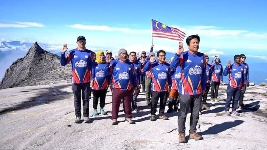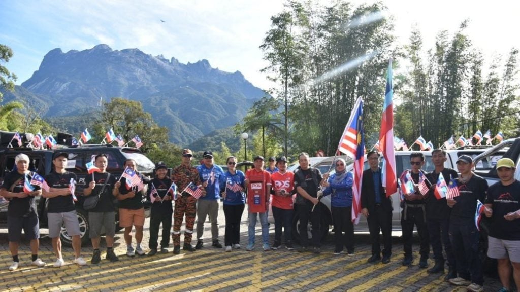 (昆达山19日讯)为了点燃沙巴人民爱国热情,辉煌条纹独立车队(KMJG)与沙巴公园携手合作,在神山峰顶成功插上国旗与沙巴州旗,创造历史性时刻。