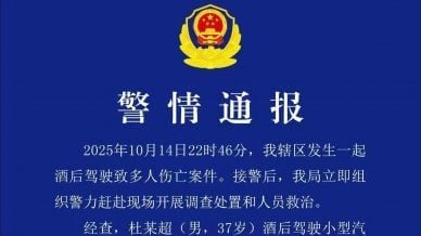 中国男子深夜酒驾 致8死4伤
