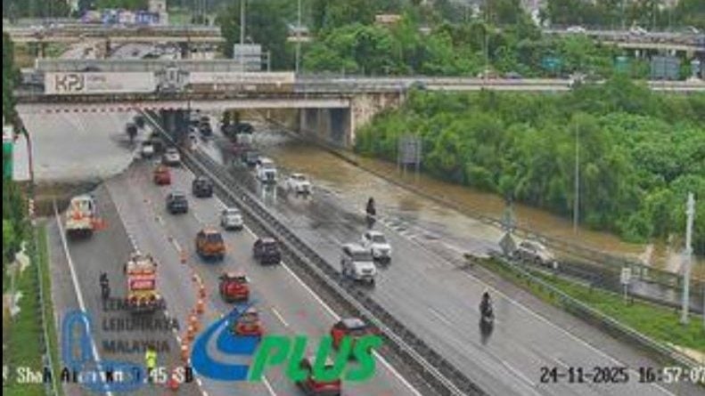 根据大道局脸书贴文,截至下午3时25分,位于新巴生河流域大道(NKVE)沙亚南武吉日落洞(9.1公里处)“水灾重灾区”北上右边与中间车道开放供局部通车,车辆缓缓而行,车龙长达6公里。