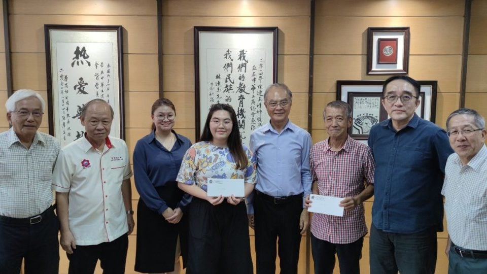 (亚庇25日讯)沙巴暨纳闽中华总商会贷学金组今天移交贷学金予3名学生。